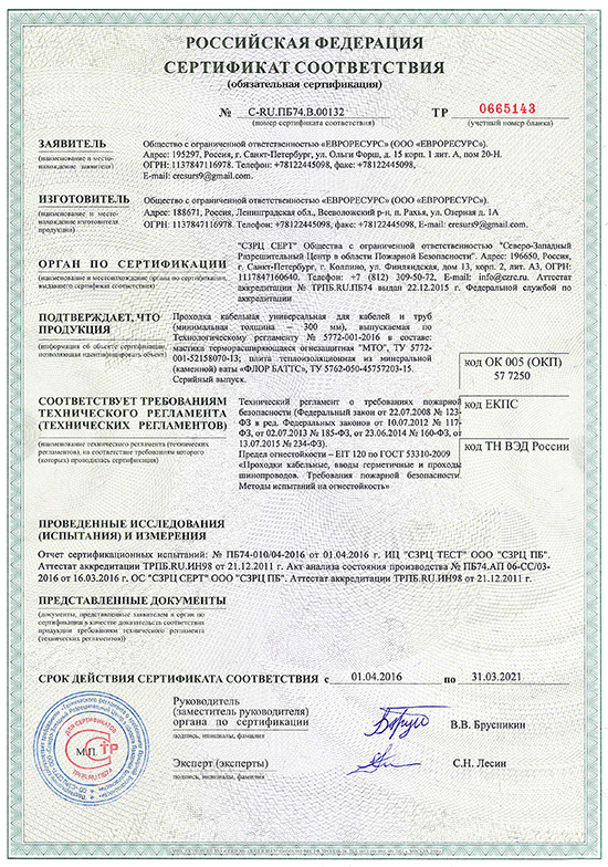 - мастика и кабельная проходка обладают высокой герметичностью, не пропускают дым, газ и воду